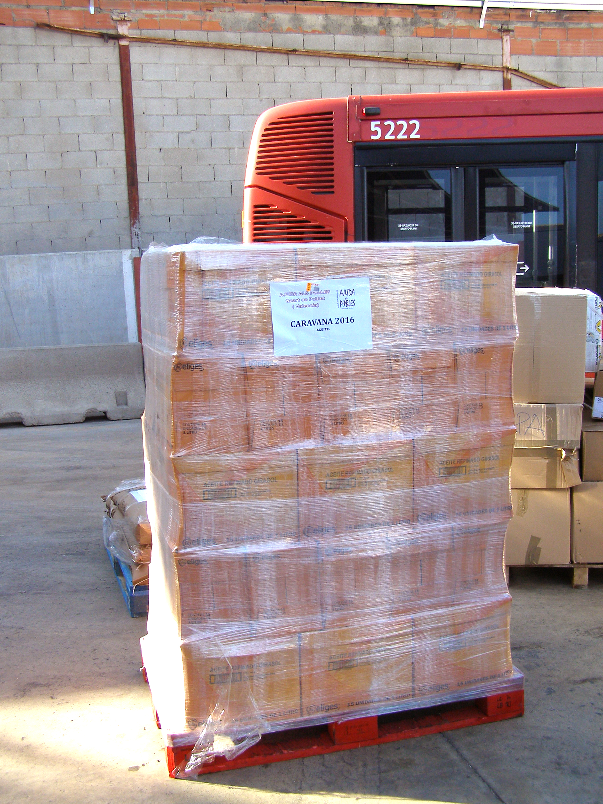 Després de mesos de campanya, la “Caravana per la Pau” d’ajuda al poble sahrauí ha arribat a la seua fi. La Federació d’Associacions de Solidaritat amb el Poble Sahrauí del País Valencià (FASPS-PV), com cada edició, s’ha encarregat de l’organització del projecte. Aquest any s’han recol·lectat 45 tones d’aliments de primera necessitat (sucre, oli i arròs), que s’han d’enviar als campaments sahrauís de Tindouf. La càrrega es va realitzar el passat dissabte a Telemix Logistic S. L, al Polígon Industrial Fuente del Jarro, a Paterna.