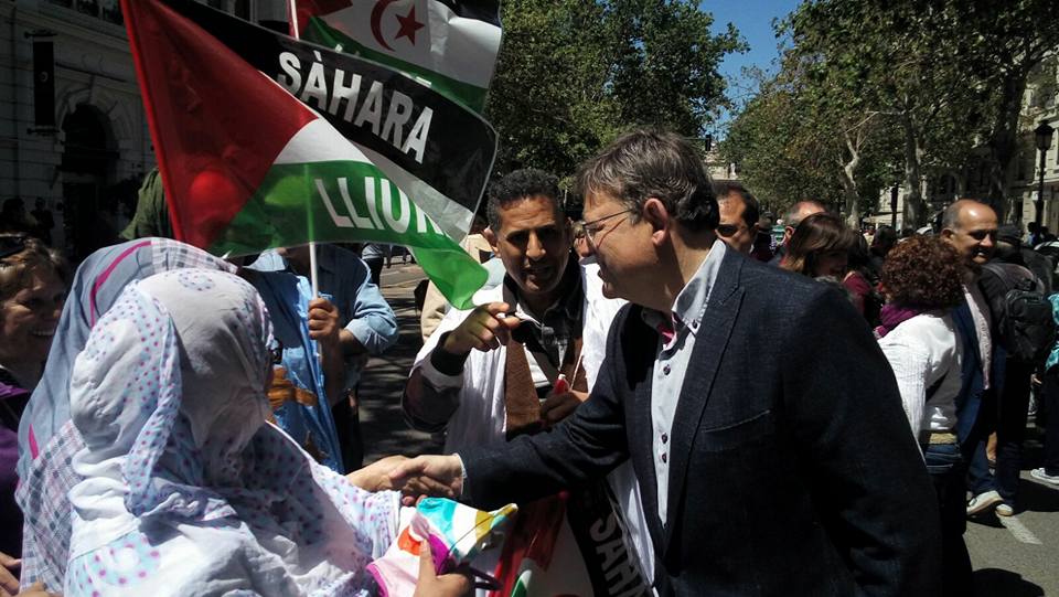 La comunitat sahrauí participa al 1r de Maig (València – Maig 2016) Posted on 2 de maig de 20162 de maig de 2016 by saharaui La comunitat sahrauí en València al 1r de Maig. El President de la Generalitat saluda al col.lectiu sahrauí que estava en la manifestació de l’1 de maig.